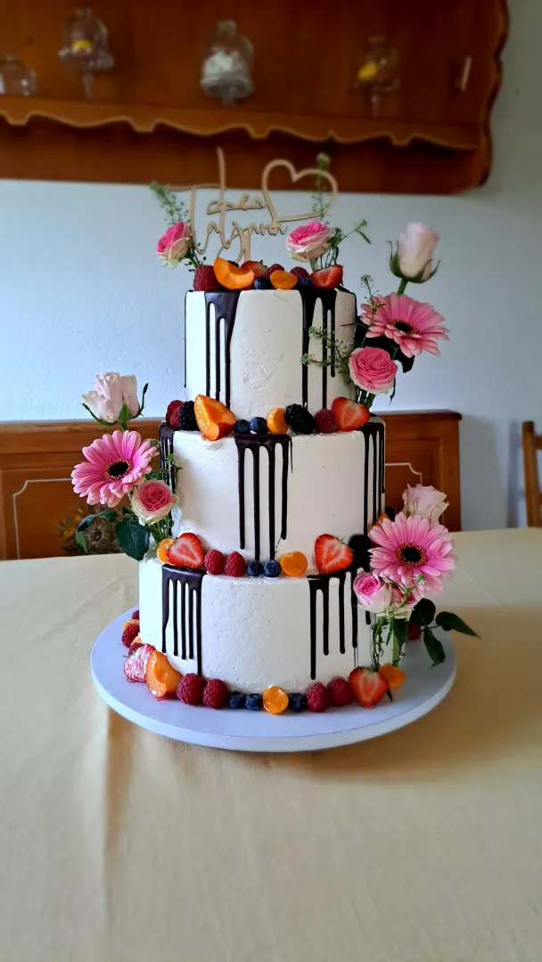 Ich freue mich, euch in einem persönlichen Gespräch kennenzulernen. Da die Torte so einzigartig sein soll wie ihr, besprechen wir jedes Detail - vom Geschmack bis hin zur Verzierung. Gerne könnt ihr ein Tasting mitbuchen. Für dieses berechne ich 50 Euro, welches bei Auftragsbestätigung abgezogen wird. Eure individuelle Hochzeitstorte ist natürlich auch vegan erhältlich.