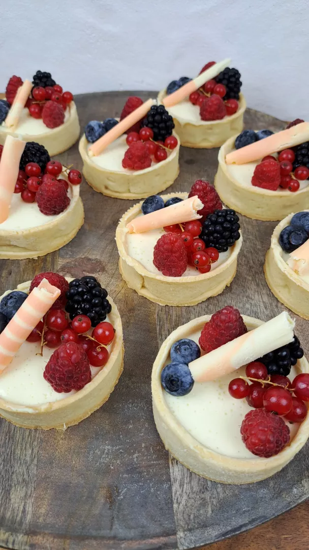 Lust auf ein paar köstliche Naschereien? Ich biete verschiedene Sweets an: Macarons, Tartelettes, Cupcakes und mehr. Diese würden auch gut zu einer Hochzeits- oder Geburtstagstorte passen. Die Verzierung der Sweets kann optisch auf das Thema der Torte abgestimmt werden. So passt alles perfekt zusammen und du kannst deinen Gästen eine kleine Auswahl an süßem Gebäck bieten. Auch in Vegan erhältlich.